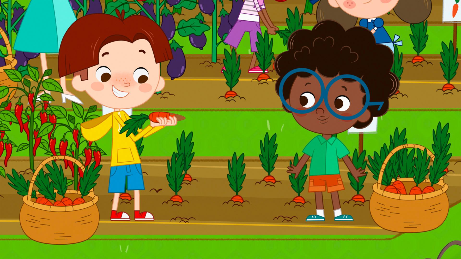 Pipo is really annoyed because it’s minestrone for lunch at school, and what’s more, the teacher has decided the whole class is going to pick vegetables in the school garden, to take to the kitchen. What lovely aromas! Too bad that it all smells disgusting once it’s in the pan. Ugh! The vegetables actually look good… but of course, they won’t taste good at all.